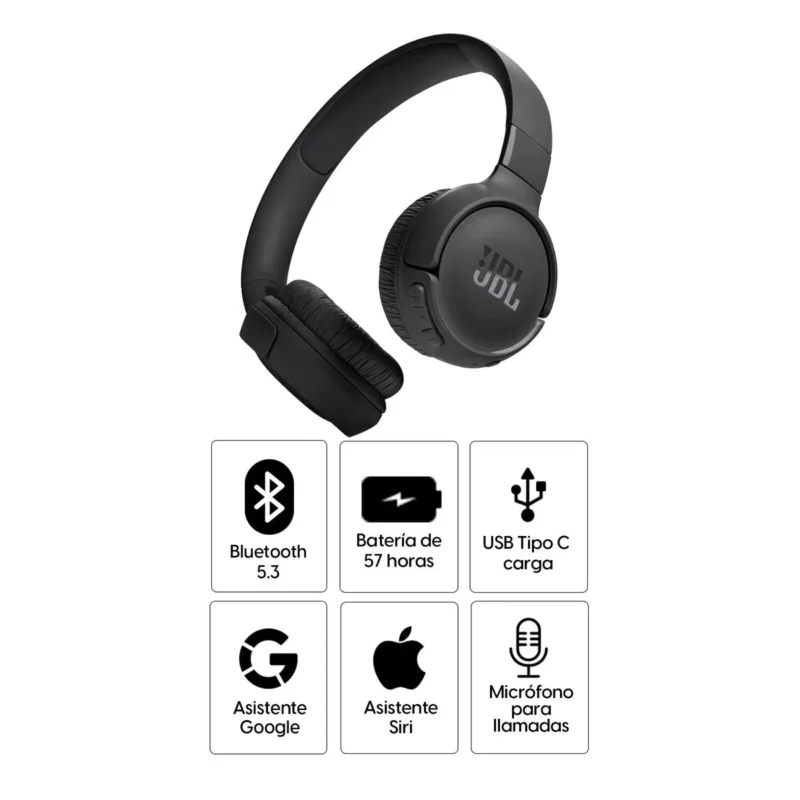 ¿Qué incluye en la caja?1 auriculares JBL Tune 520BT, 1 cable de carga USB-C, 1 garantía/advertencia y 1 guía de inicio rápido
